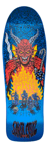The Santa Cruz Stranger Things Knox Hellfire Pit 10.07in x 31.275in deck features Multicolor Glow In The Dark Graphics on Tom Knox's classic Firepit reissue shape.
