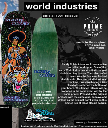 World Industries "Randy Colvin- Velvet Safari" 9.75" Reissue Deck from Prime MFG